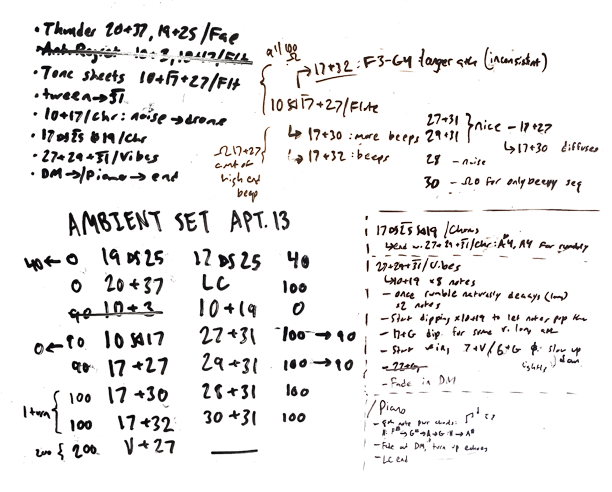 10+17+27 - two connections between 10+17 and 17+27 both at 100 ohms. Rhythmic beeps occur more frequently when turning the resistance down on 17+27. A few other bends that change the pitch of the beeps can be woven in if activated slowly from 100 ohms down. 17+32 also makes certain notes have a long attack. In the meantime D4, D5, D6 are forced to logic 1 to gliss notes *either* up or down- the direction of the gliss (for each note) is random. Very slow clock speed.